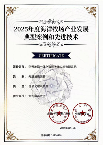 吉祥体育一项成果获得全国海洋牧场产业发展典型案例和先进技术证书