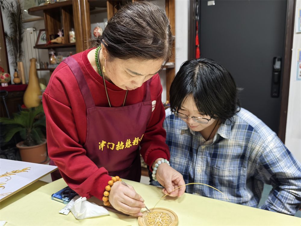 第两站,理论团前去津门掐丝粉彩武艺非遗传启基天观光进修。津门掐丝粉彩造做武艺第4代传启人下洪素教员热心天背同砚们引见了掐丝粉彩的汗青渊源、艺术特性及造做本领,并展现了1个个精巧尽伦的撰着。互动步骤中,下洪素恭请同砚们一同造做掐丝粉彩。正在她的讨教停,同砚们绘图、掐丝、挖色,金属丝线正在指尖“飘动”,没有1会女功夫,线条畅通、活灵活现的文章便展示正在长远。