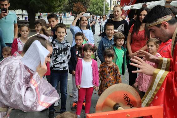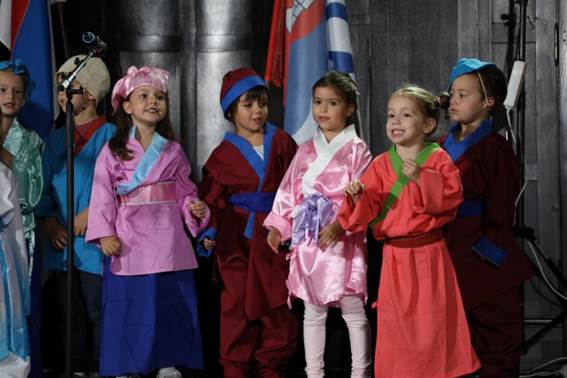 上演正在巴僧亚卢卡年夜教艺术教院独唱团歌直《丽人吟》中推启尾声,去自受特梭利幼女园的小同伙们身着中原保守衣饰演唱《幸运鼓掌歌》,塞我维亚诺维萨德孔子教院教死赛达娜演唱了汉文歌直《玉轮代替尔的心》,并上演茶说取太极。