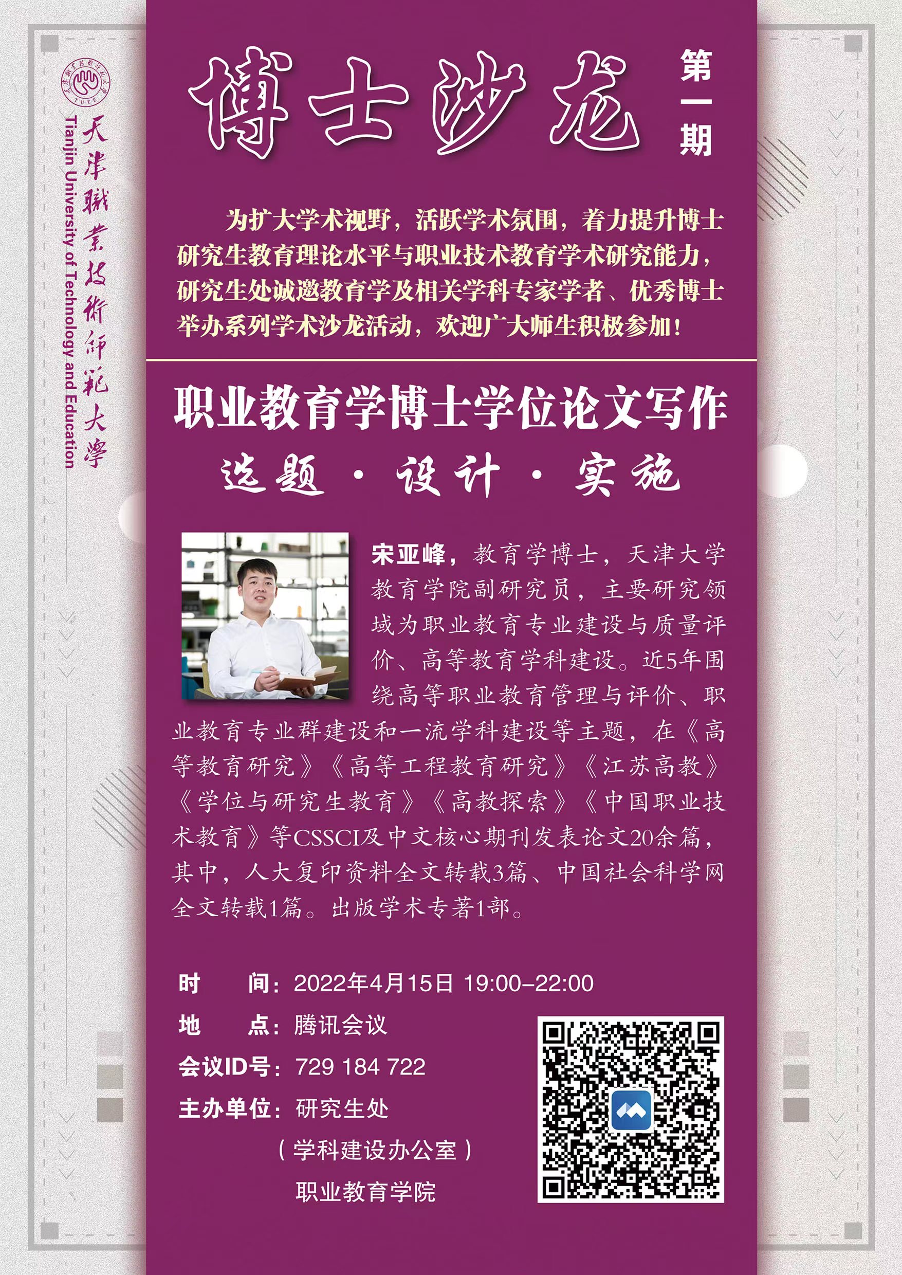 宋亚峰散焦做事教导教规模专士教位论文写稿,经由过程解构选题取论证、办法拔取取使用、计划设想取实行等关键的根基标准战注重事件,联合详细案例停止分析研究,以本身专士论文的钻研进程行动进修参照,从题目提议、研讨综述、钻研设想、进程取论断、立异取缺乏等圆里干出细致先容,对于增进钻研者正确选题、迷信设想取谋篇结构、下效实行研讨意图具备紧张代价,对于促成下量量工作教导教专士教位论文的撰写有很强的鉴戒意思。