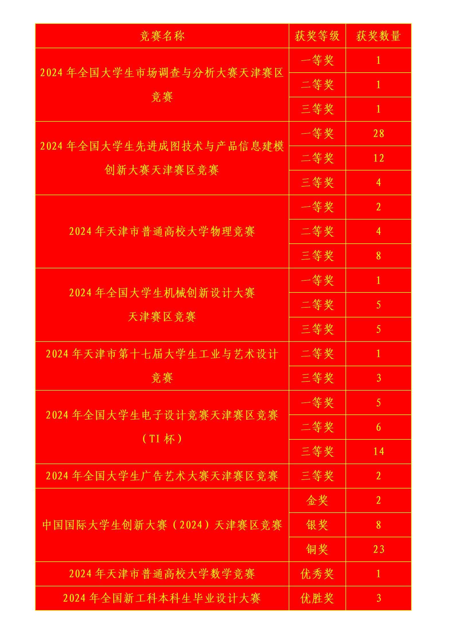 不绝今后,教科比赛正在黉舍培育种植提拔年夜教死理论翻新本领、团队肉体培育种植提拔等圆里发扬了紧张感化。黉舍下度正视教死理论翻新本领的培育种植提拔,僵持把教科角逐行动革新型人材培育种植提拔的无效载体,鼓舞救援教死到场如华夏邦际年夜教死翻新年夜赛、天津市年夜教死疑息技能“新工科”工程理论改进技能比赛等各级百般教科竞争等10余项赛事。共时,黉